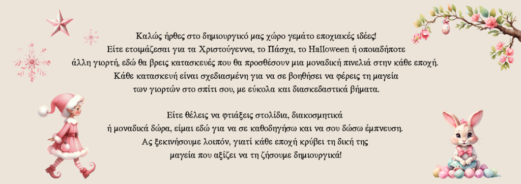 Εποχιακές Κατασκευές Οι μπότες της μάγισσας(halloween) Οι μπότες της μάγισσας (Halloween) Γεια σας, δημιουργικοί φίλοι! Είστε...Read More Το Ξεκίνημα του Δημιουργικού μου Ταξιδιού! Το Ξεκίνημα του Δημιουργικού μου Ταξιδιού! Καλώς ήρθατε στο blog...Read More